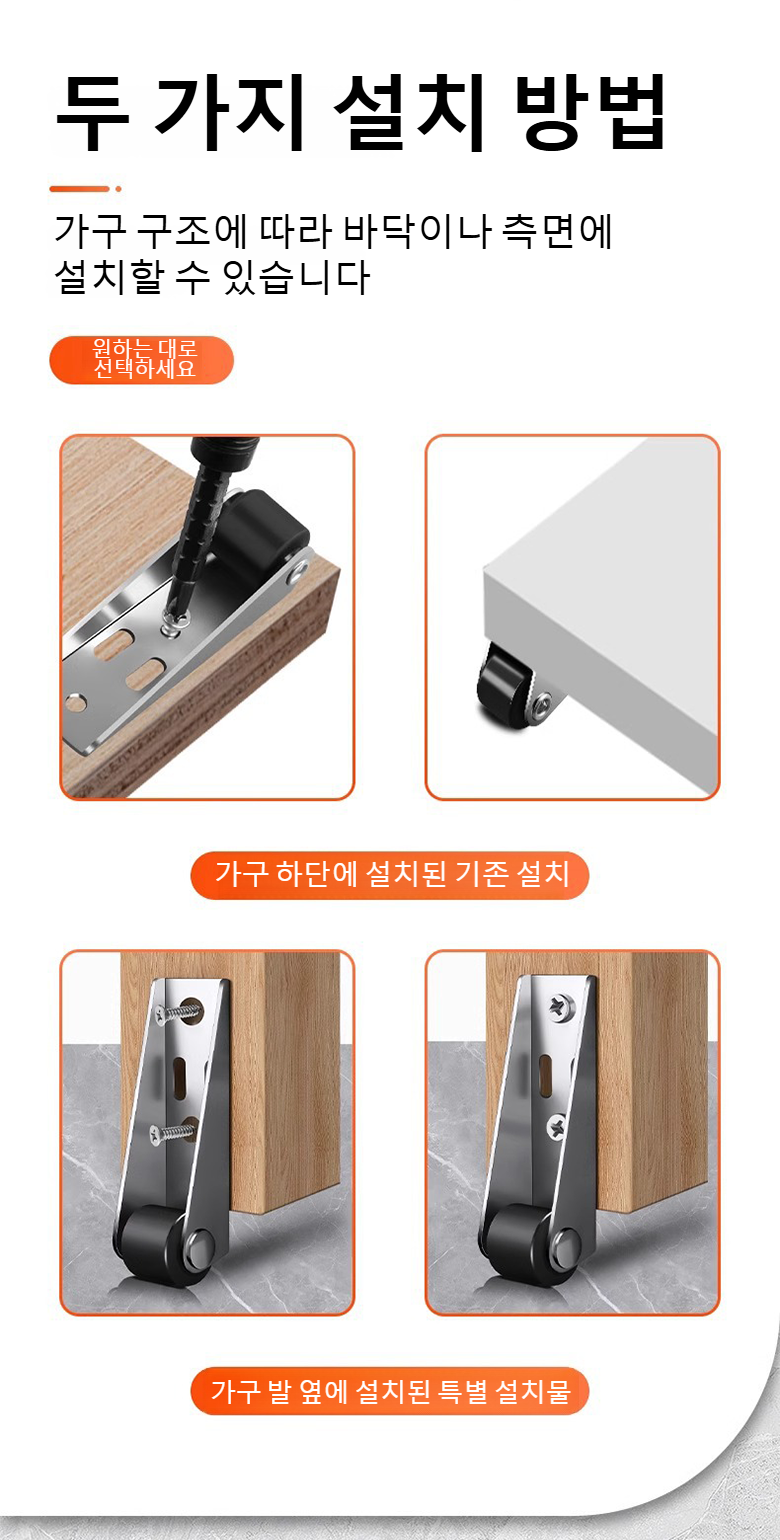 평이동 도어 하부 미끄럼 방지 바퀴 설치 모습