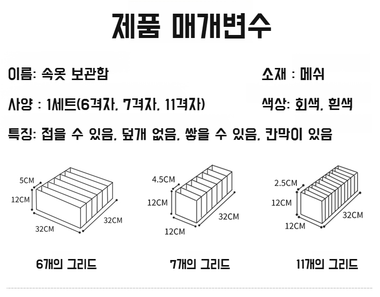여성 가정용 수납함 망사 칸막이 속옷 수납함 서랍형 의류정리함 칸막이 양말정리칸 양말수납함